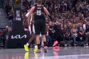 下一篇: 缓一缓!凯尔登上篮时左手无意打到约基奇脖子位置 后者很难受