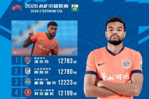 体育资讯4月6日讯 今日,中超联赛官方公布了第4轮跑动榜,海牛外援埃朱马连续两轮登顶,本轮他的跑动距离为12783米,英博外援阿利米仅以3米之差列第二位。