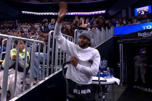 穆迪拄双拐来勇士主场 勇士球迷起立送上久久的掌声 穆迪有些泪目